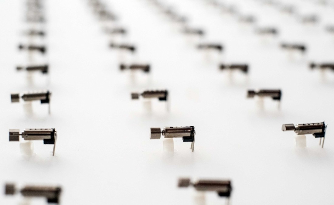 576 individuell steuerbare Vibrationsmotoren sind auf einer Acrylfläche mit den Maßen 1350mm x 1350mm befestigt. Die Motoren bilden mit einem Abstand von 50mm zu einander eine Matrix mit einer Auflösung von 24 x 24.