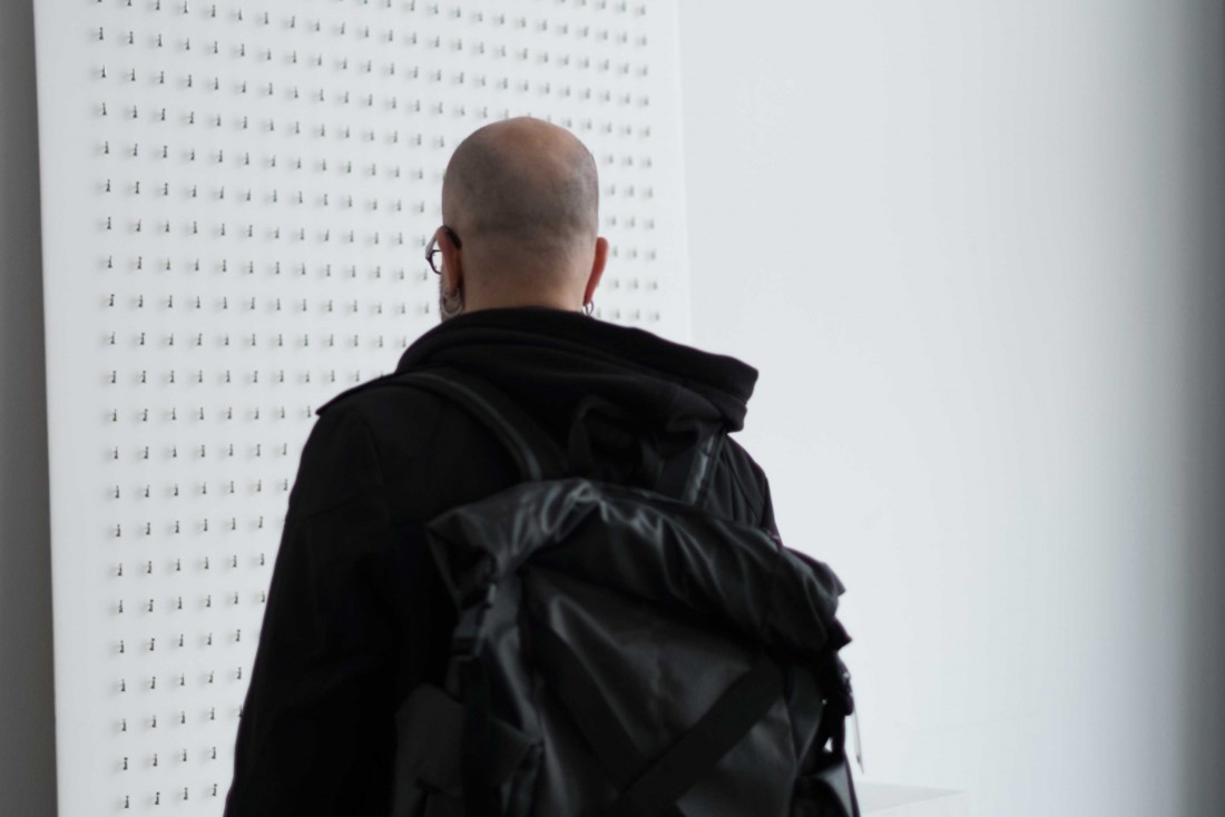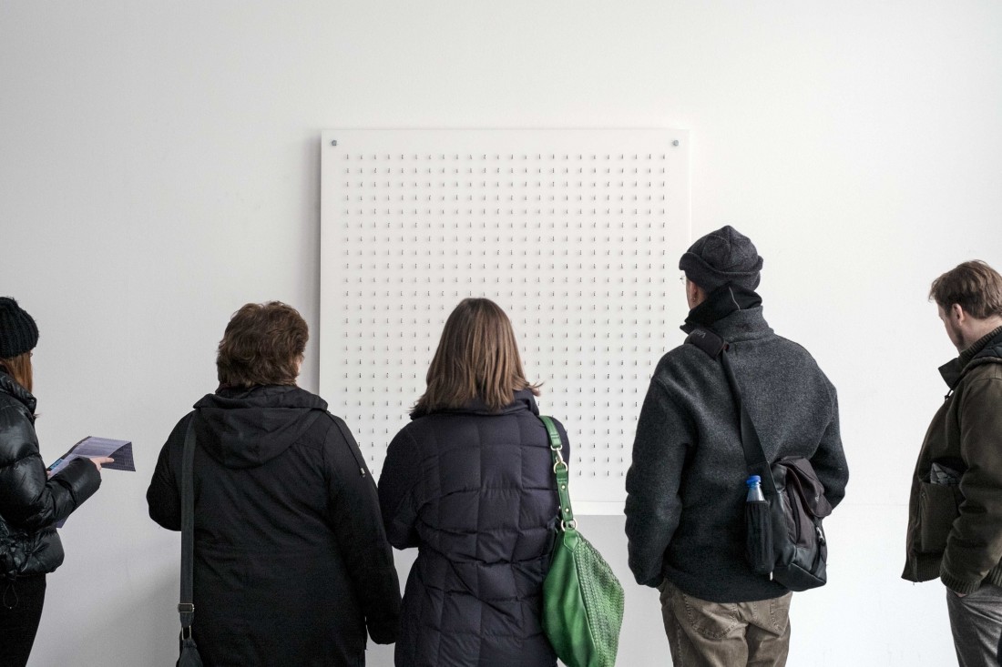 Durch den Algorithmus, der diese Matrix steuert, ergibt sich eine Klangstruktur aus reduzierten akustischen Patterns, die sich auch räumlich auf der Fläche der Acrylplatte verteilen. Somit werden die Patterns synchron durch die Materialien und deren räumliche Verortung bestimmt.